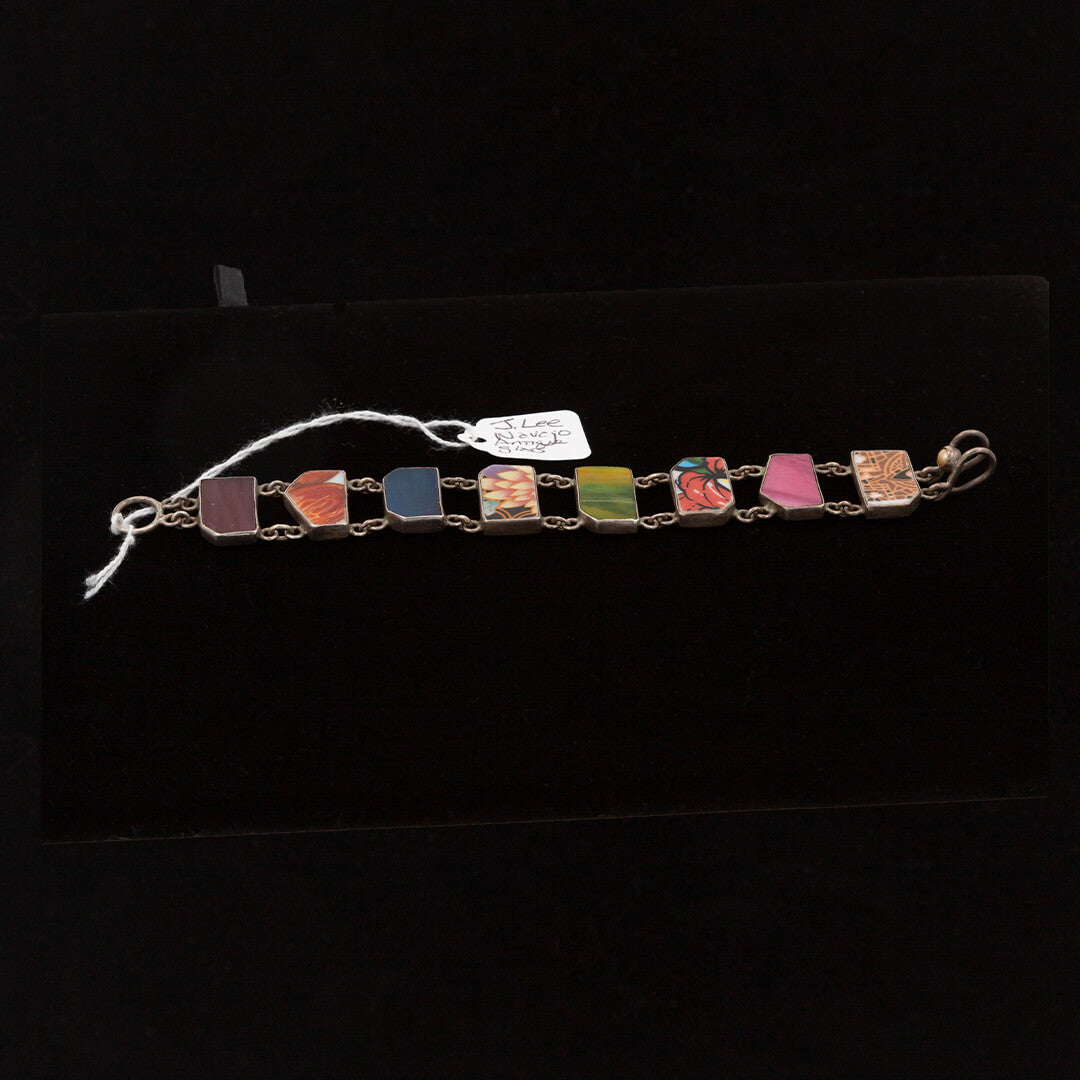 Signed and 925 Antique glass bracelet expertly crafted and hallmarked by Navajo Artist J. Lee