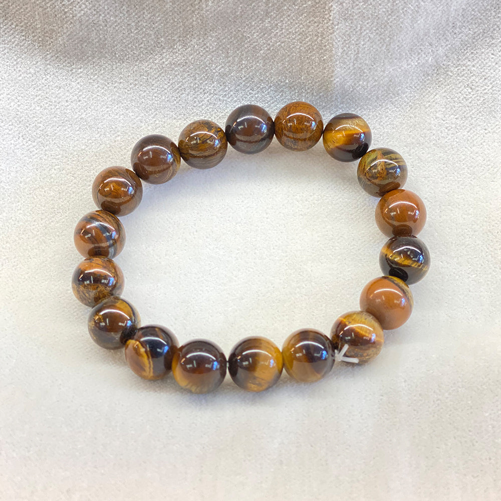 Tiger's Eye Bracelet. Beautiful round 10mm beads on stretch cord. Very good quality. Unique, iridescent gem design in each bead. One size fits most. You will receive a piece similar to the one pictured. Tiger's eye is said to ward off evil and bring good luck.